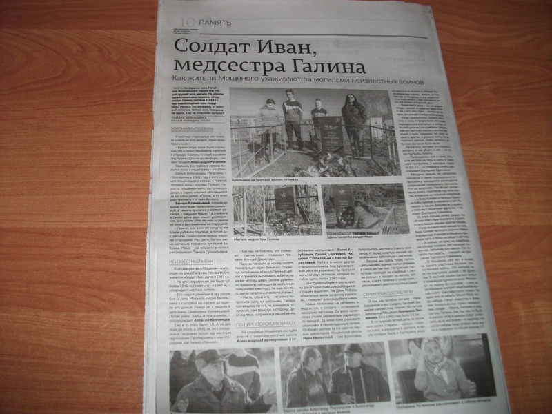 14 мая 2020 г. вышел номер газеты «Белгородская правда» с рассказом о том, как члены РДШ и жители с.Мощеное ухаживают за могилами погибших солдат.